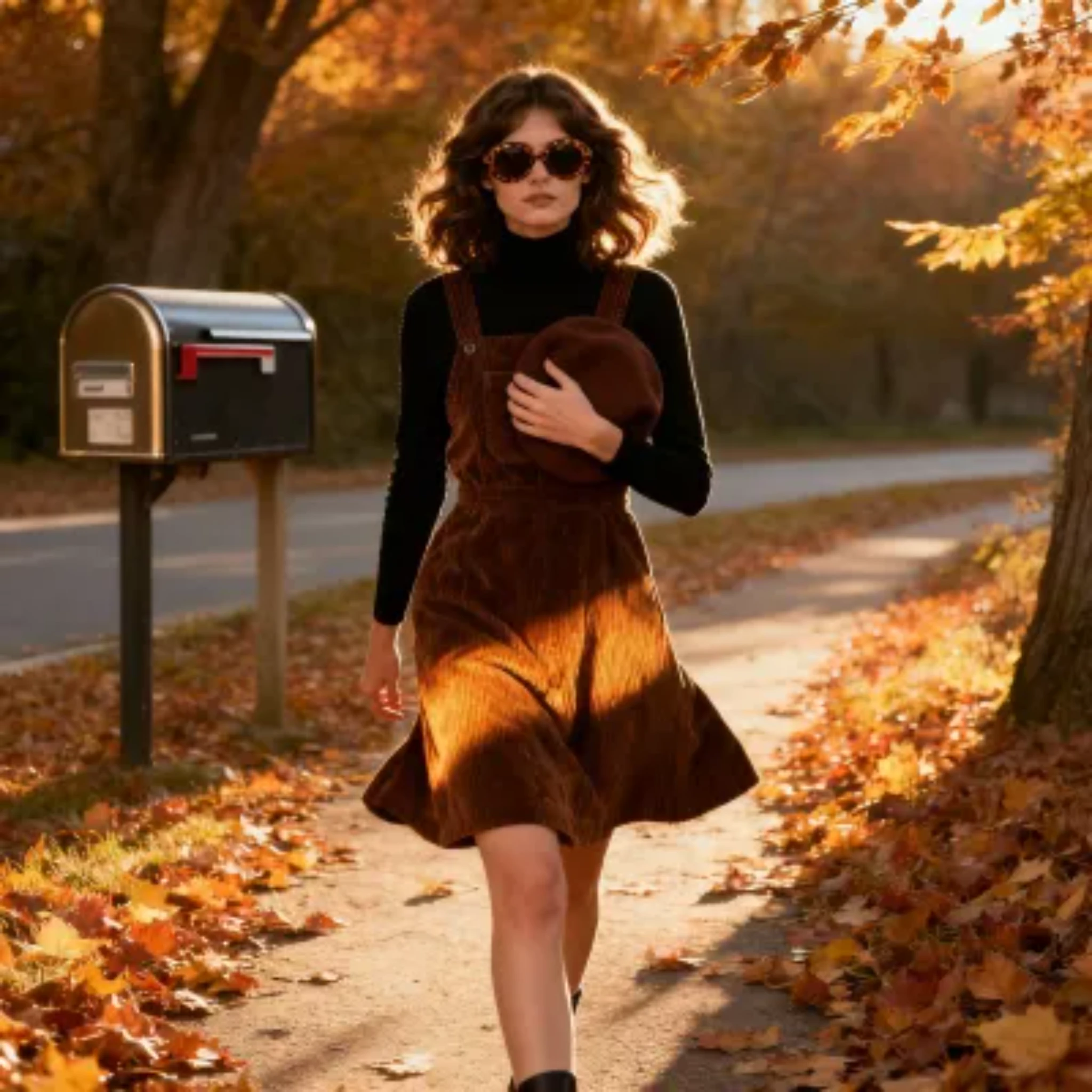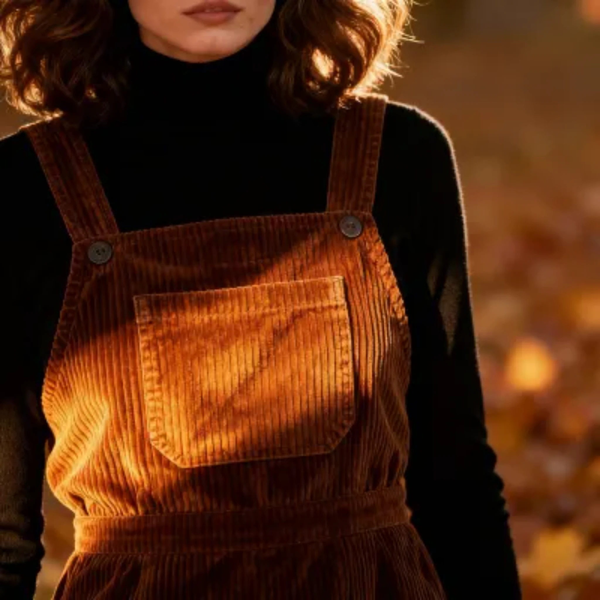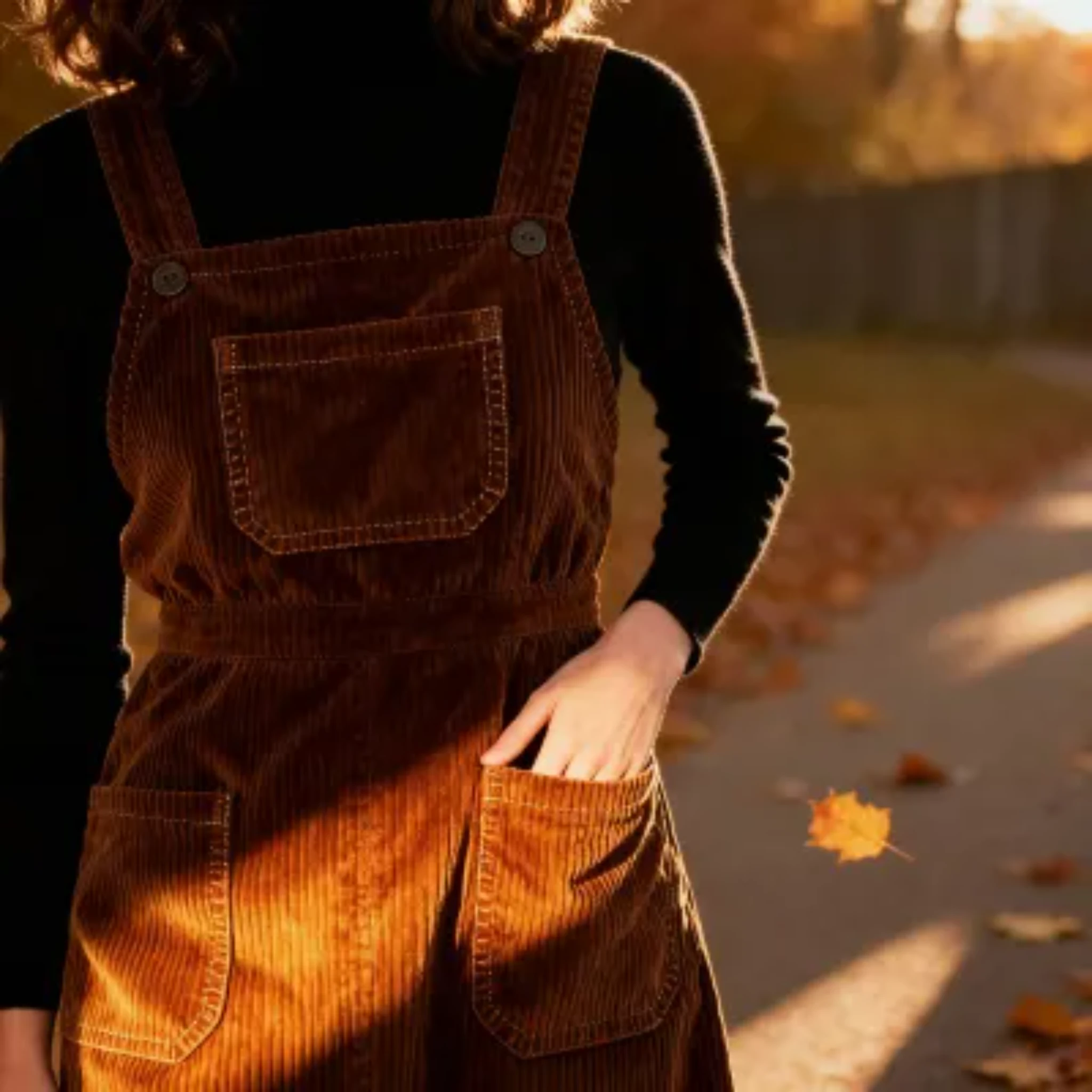 Bring vintage charm into your autumn wardrobe with this corduroy pinafore dress. Crafted from soft yet structured corduroy, it delivers a retro-inspired silhouette that’s easy to layer and style. The sleeveless cut and adjustable straps make it versatile — pair it with a fitted turtleneck and tights for a cozy everyday look, or layer it over a blouse for a more polished, preppy vibe. Its warm brown shade captures the earthy tones of the season, while the subtle A-line shape offers comfort and freedom of movement. Perfect for creating laid-back outfits with a nostalgic twist.